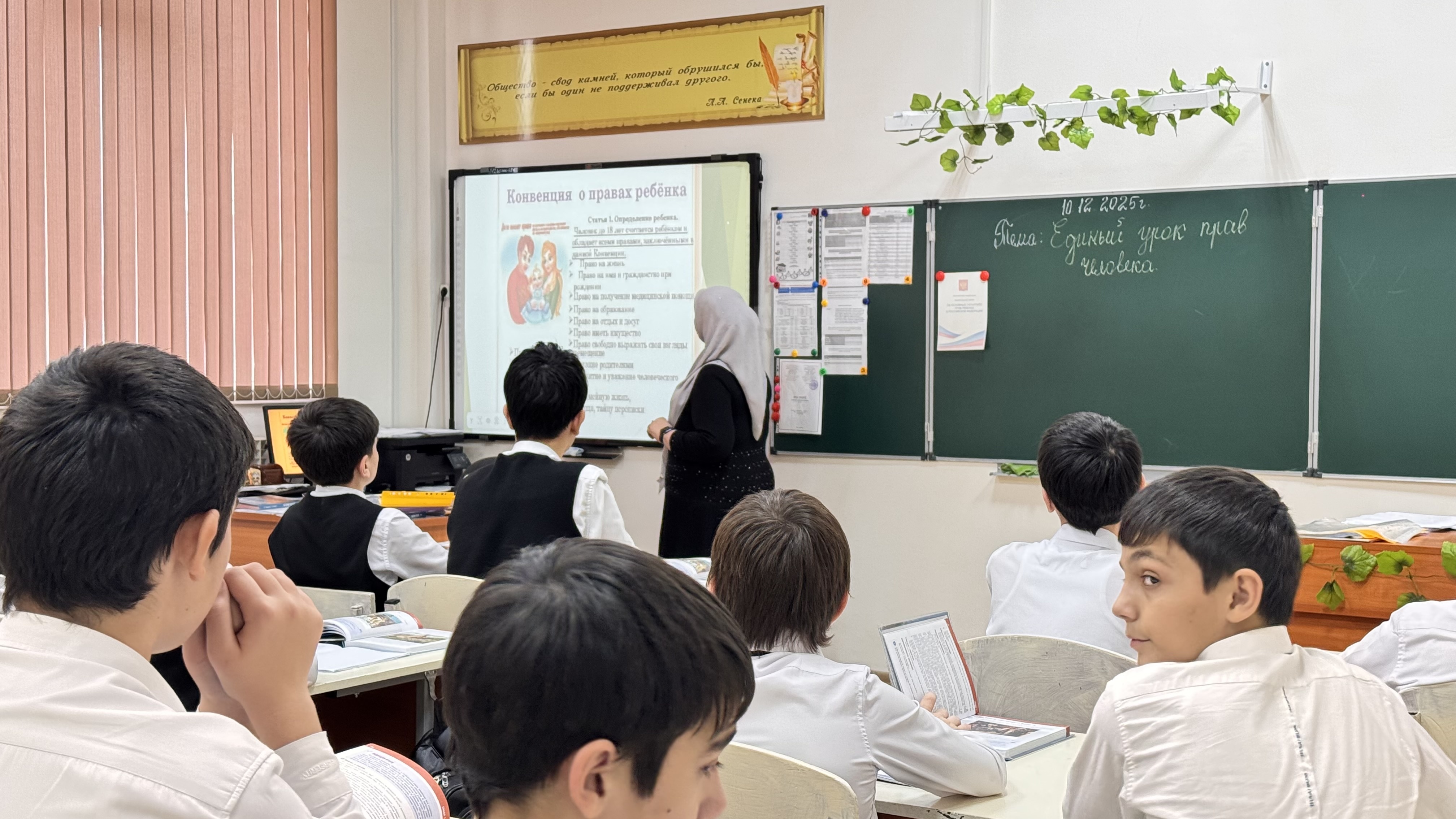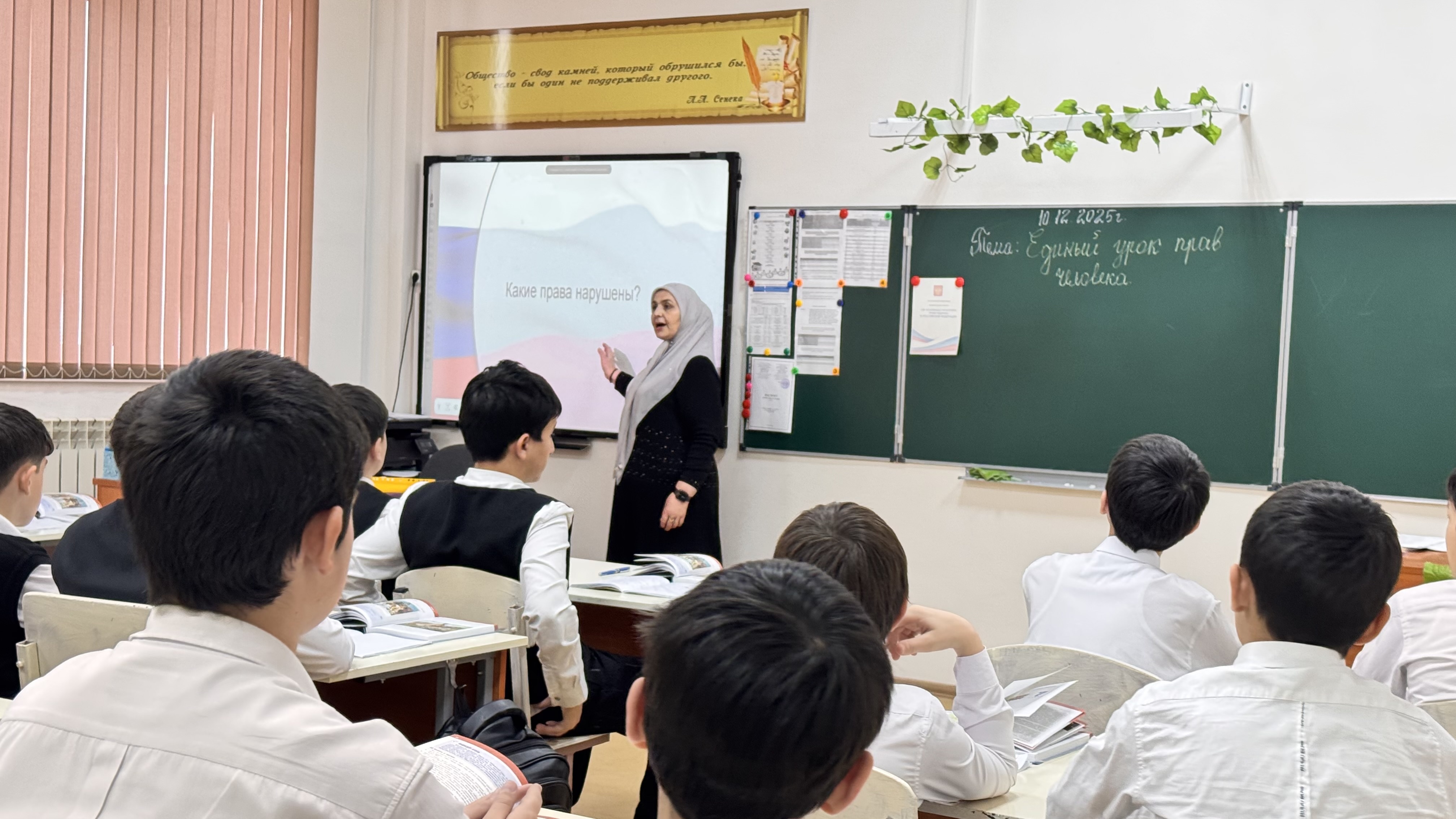10.12.202510.12.2025г был проведен урок приуроченный ко дню «Права человека», в 7 «А» МБОУ «Джалкинской СШ 3» учителем-предметником истории и обществознания Мирзаевой Х.А.. Единый урок ежегодно проводится в рамках празднования Дня прав человека ( 10 декабря ) по инициативе Уполномоченного по правам человека в Российской Федерации Москальковой Т.Н.